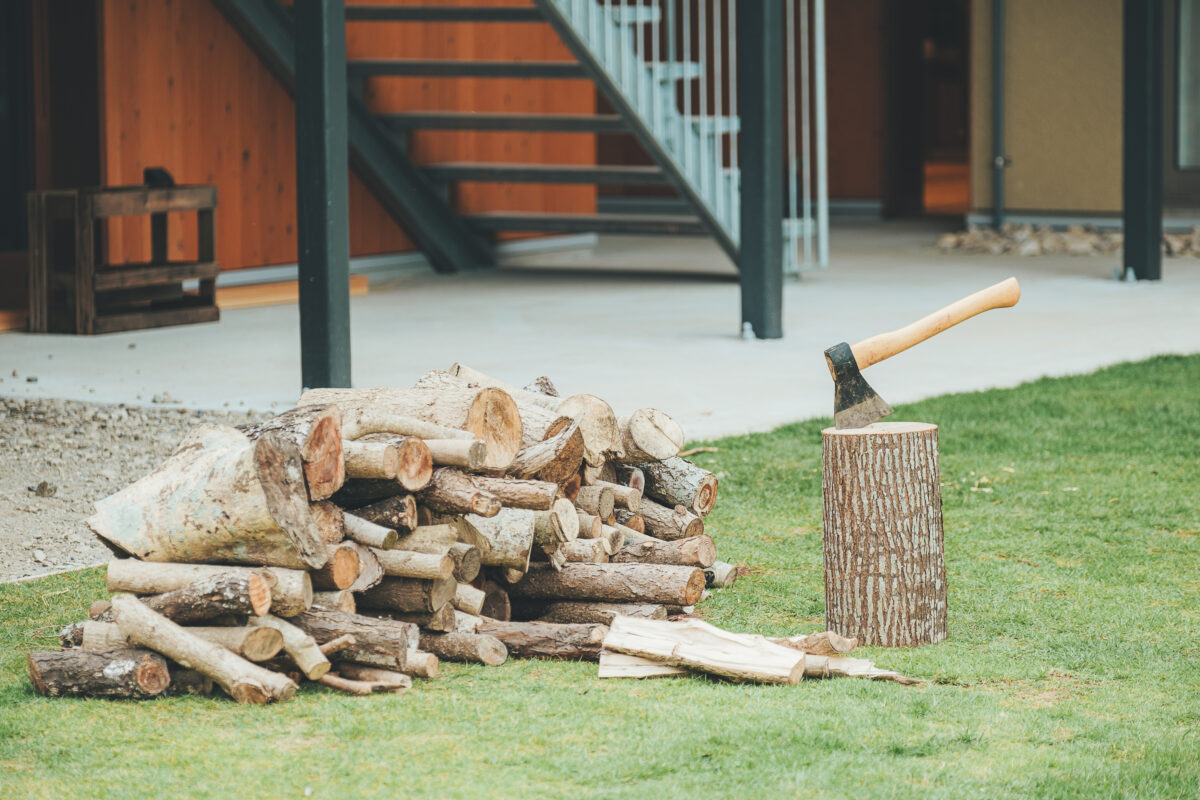 薪割り かまどのエネルギーは薪。 手ごろな長さや太さに割っただけに思われる薪。 広葉樹や針葉樹などの木の種類、割り方、組み方、くべるタイミング等によって、エネルギーの大小を調節するため、薪割りは奥深いものになる。 薪割りを楽しみながら、昔ながらのエネルギーを感じことができるのも、この薪割りエリアの醍醐味です。 緊急事態時には頼もしいエネルギーにもなる薪、先人の知恵から教えてもらえる薪割りを是非体験してみてください。